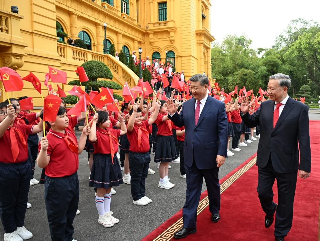 當日下午,越共中央總書記蘇林為習(xí)近平舉行隆重歡迎儀式。