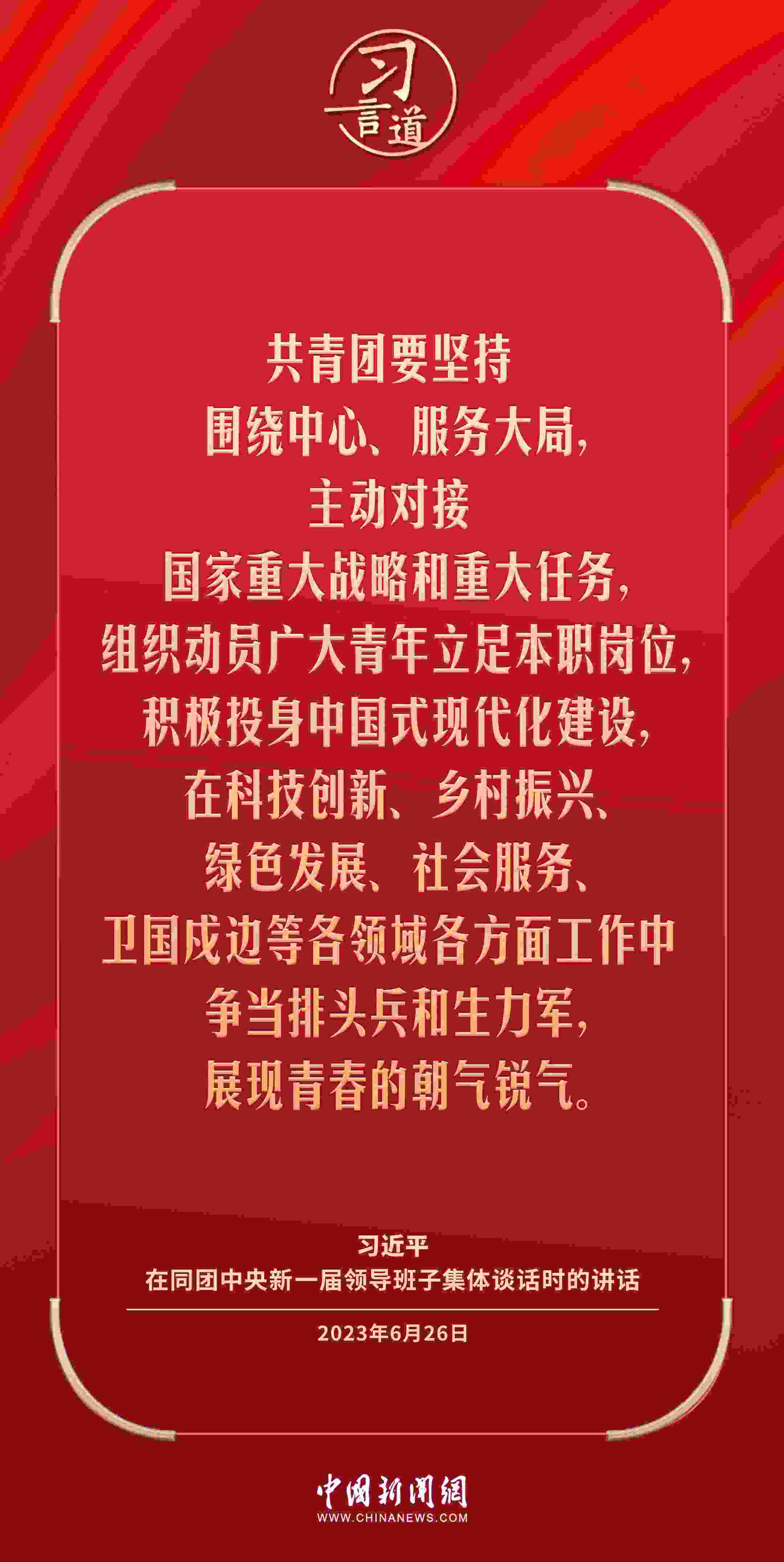 5月1日出版的《求是》雜志發(fā)表中共中央總書記、國家主席、中央軍委主席習(xí)近平的重要文章《激勵(lì)新時(shí)代青年在中國式現(xiàn)代化建設(shè)中挺膺擔(dān)當(dāng)》。這是習(xí)近平總書記2023年6月26日在同團(tuán)中央新一屆領(lǐng)導(dǎo)班子集體談話時(shí)講話的主要部分。