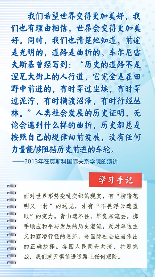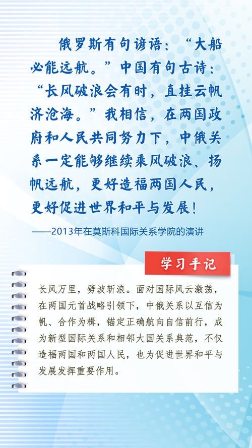 我們一起來學(xué)習(xí)品讀這些飽含哲思的論述,從中感悟新時(shí)代中俄關(guān)系在復(fù)雜的外部環(huán)境下堅(jiān)毅前行之道,感悟習(xí)近平主席作為大黨大國(guó)領(lǐng)袖、世界級(jí)領(lǐng)袖的時(shí)代擔(dān)當(dāng)與天下情懷。