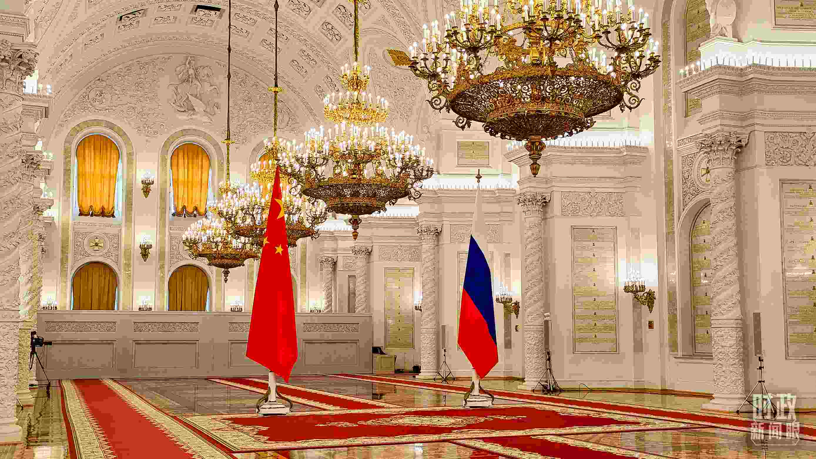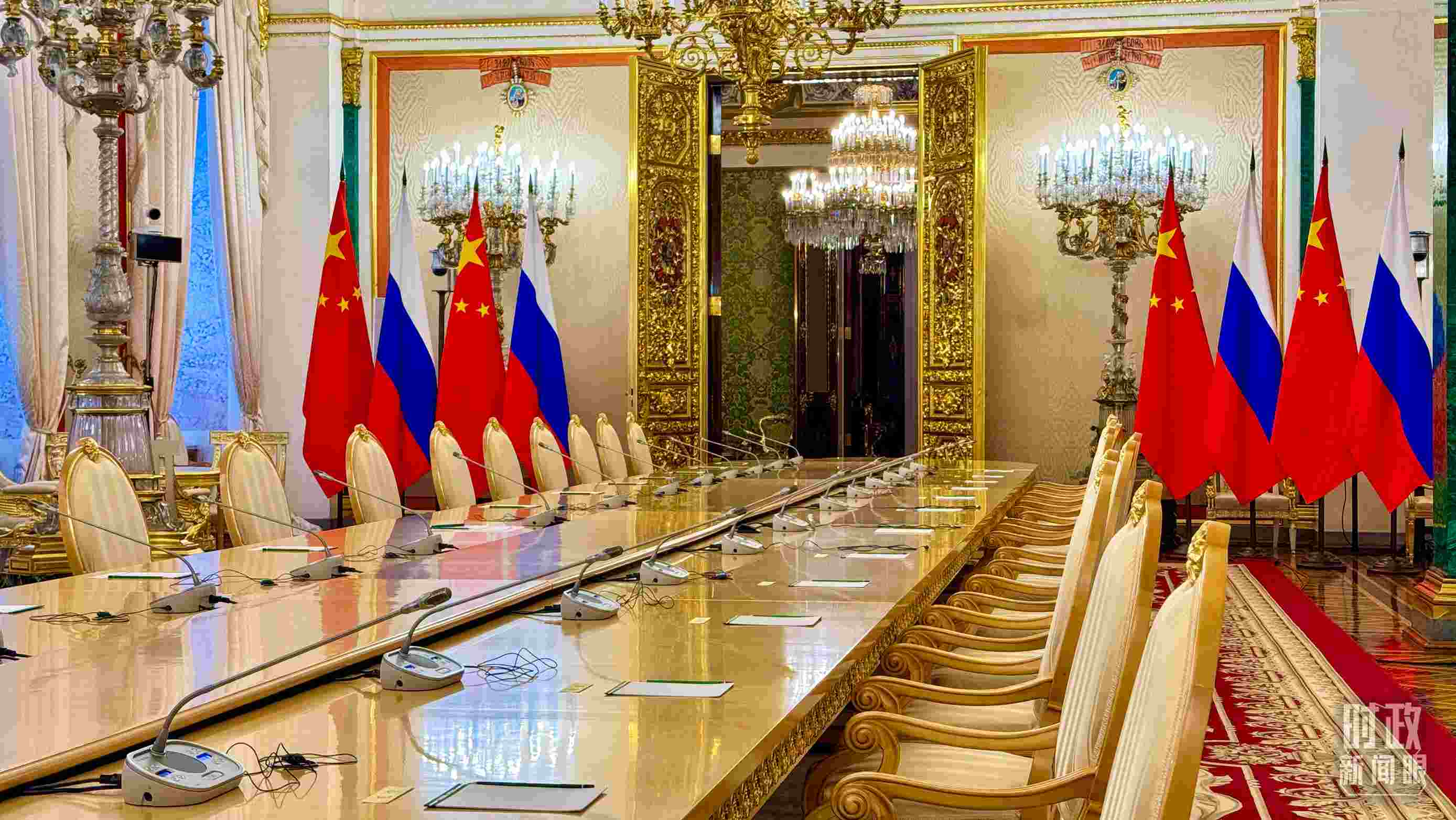 △習(xí)主席和普京總統(tǒng)舉行大范圍會談的會場。(總臺央視記者趙東辰拍攝)