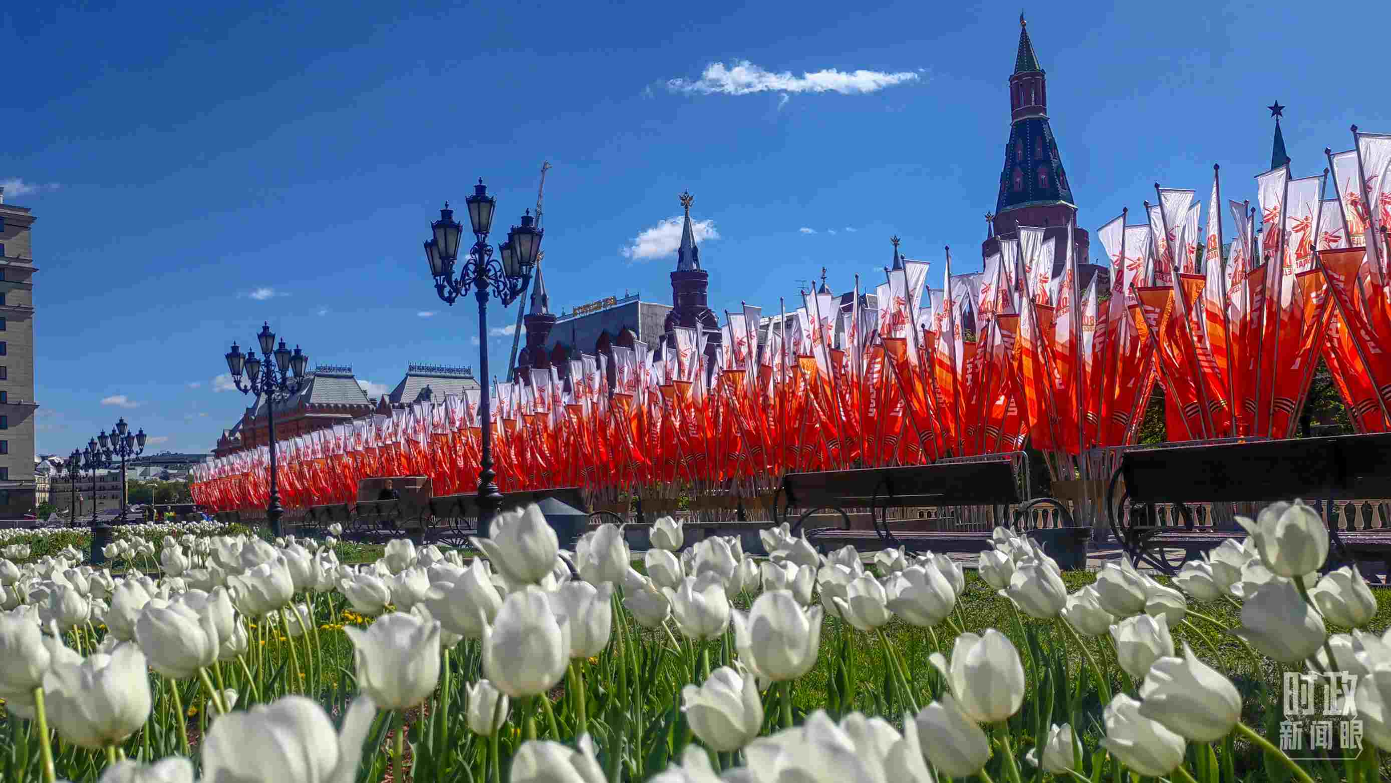 △莫斯科街頭的勝利日旗幟。(總臺央視記者楊波拍攝)