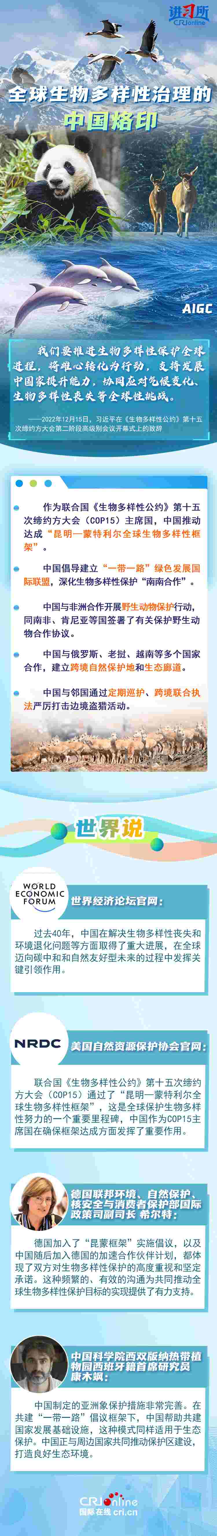 “心往一處想、勁往一處使,共建地球生命共同體。”作為最早簽署、批準《生物多樣性公約》的締約方之一,生物多樣性保護已經上升為中國的國家發(fā)展戰(zhàn)略。國際人士表示,中國的一系列舉措體現出對生態(tài)環(huán)境保護的堅定決心,同時,中國依托共建“一帶一路”倡議等國際合作機制,為推動全球生物多樣性保護提供了有力支持,在邁向自然友好型未來的過程中發(fā)揮關鍵的引領作用。