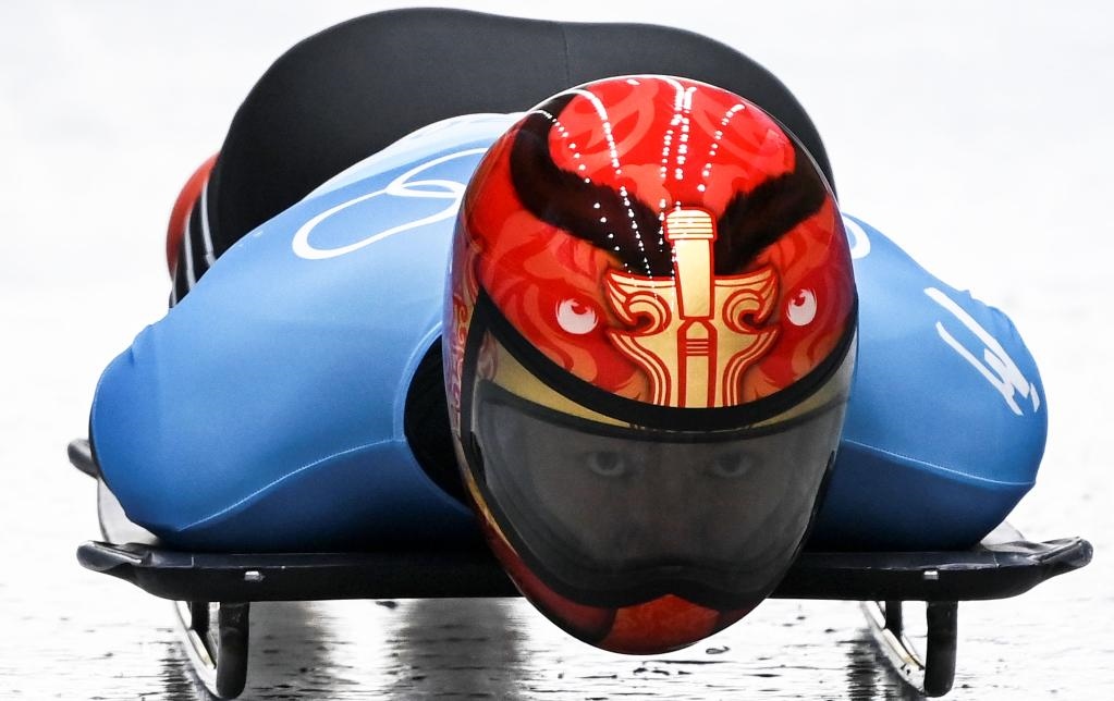 2月10日,中國(guó)選手殷正在北京冬奧會(huì)男子鋼架雪車項(xiàng)目比賽中。新華社記者賀長(zhǎng)山攝