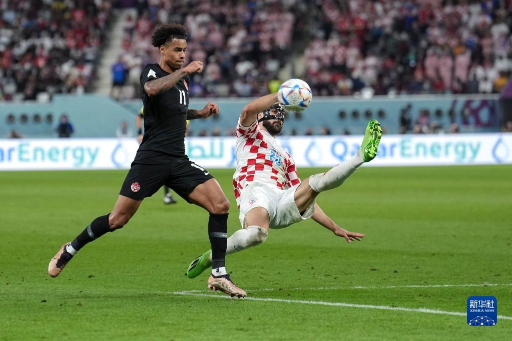 當(dāng)日,在卡塔爾多哈哈里發(fā)國際體育場進(jìn)行的2022卡塔爾世界杯足球賽F組比賽中,克羅地亞隊(duì)以4比1戰(zhàn)勝加拿大隊(duì)。