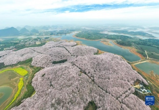 3月21日拍攝的貴州省貴安新區(qū)櫻花園(無人機照片)。