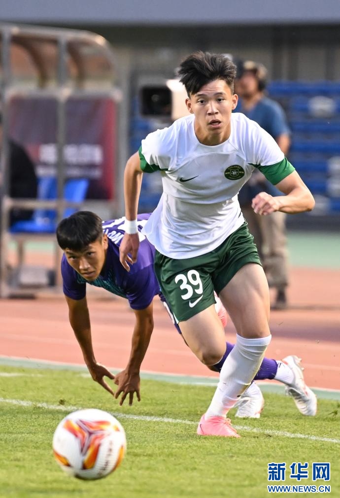??6月15日,浙江俱樂(lè)部U21隊(duì)球員王鈺棟(前)在比賽中帶球突破。