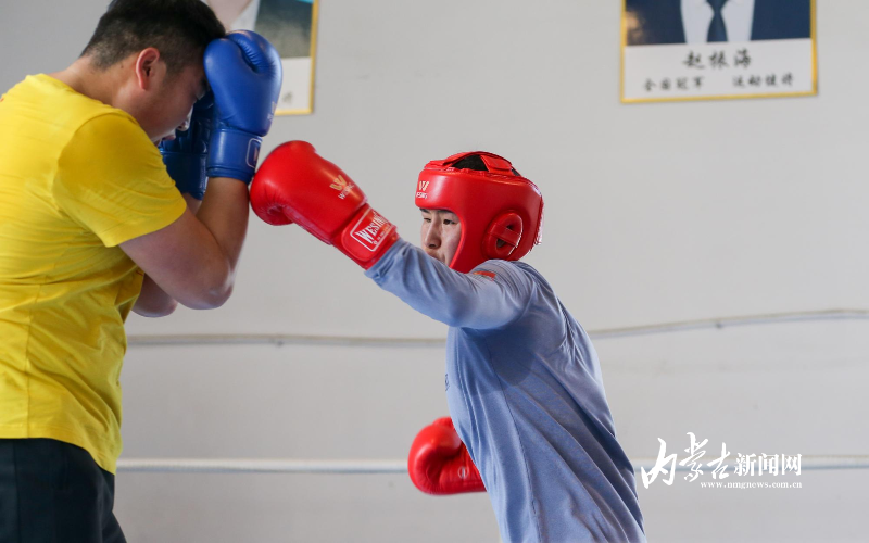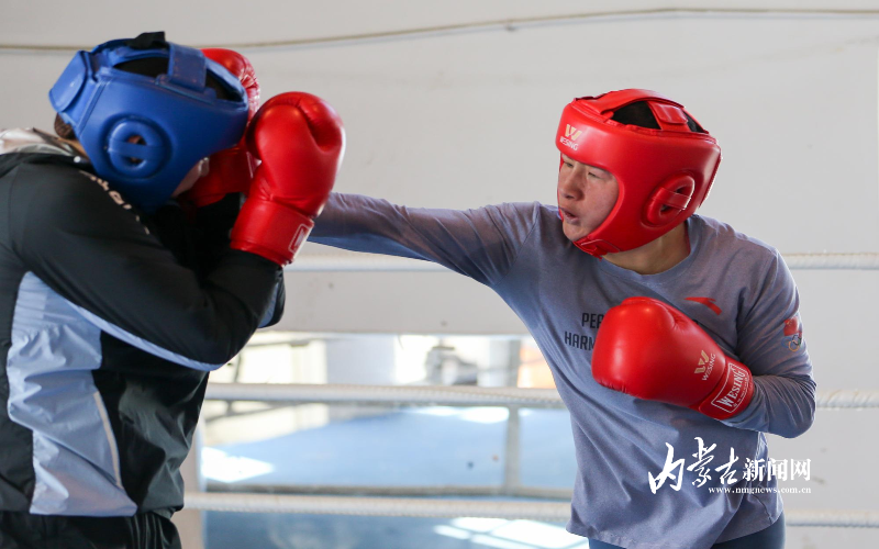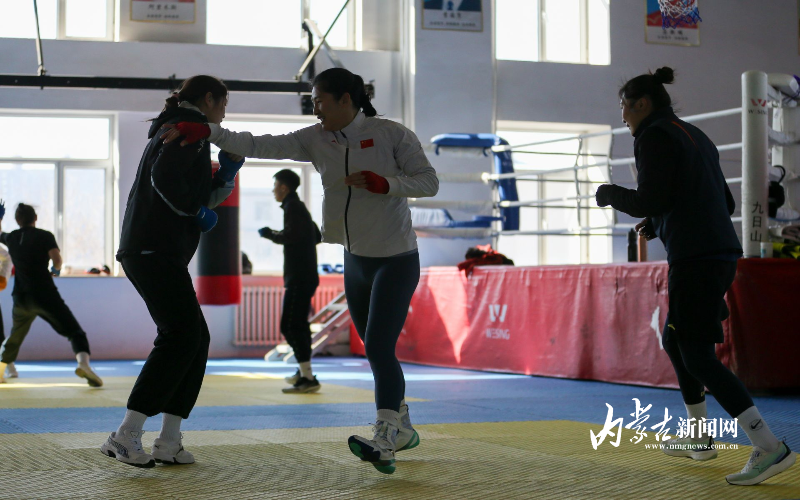 當(dāng)日,記者在拳擊館內(nèi)看到,在訓(xùn)練中李倩腳步輕盈,汗珠在額頭滑落。她戴上拳套,走向沙袋,一記記重拳砸出,發(fā)出沉悶的“砰”聲。內(nèi)蒙古女子拳擊隊的數(shù)十名拳手正在同時訓(xùn)練,沙袋晃動,呼吸急促,空氣中彌漫著汗水與堅持的味道?!胺朗?,腳下要穩(wěn)!”內(nèi)蒙古拳擊隊總教練哈達(dá)巴特爾的聲音在空間回蕩。李倩的訓(xùn)練格外嚴(yán)格。除了常規(guī)力量訓(xùn)練、反應(yīng)訓(xùn)練和體能循環(huán),她還要進(jìn)行一對一的與男拳手的實戰(zhàn)模擬,幾次交鋒下來,氣息都愈發(fā)急促。但李倩沒有退縮,反而越打越穩(wěn),腳步靈活,出拳干凈利落。