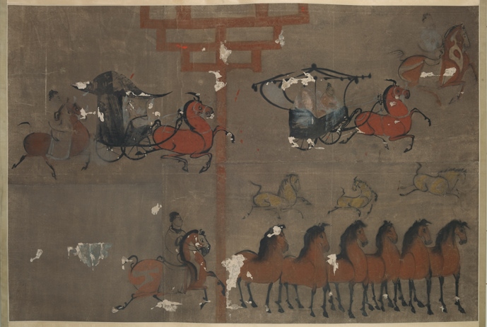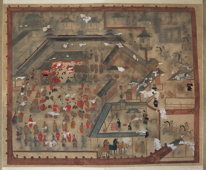 他,眼神堅定,峨冠博帶,身著華服位于畫面中央,周圍有疾馳的駿馬、彪悍的武士、精彩奇絕的樂舞百戲……這些畫面看上去遙遠(yuǎn)而陌生。