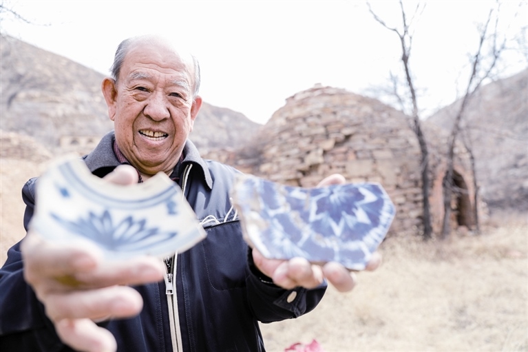 “面前的是清水河縣窯溝鄉(xiāng)黑礬溝古窯址群,也是清水河瓷藝的發(fā)源地。這里曾因瓷藝盛極一時,人聲鼎沸,可是現(xiàn)在,隨著南方瓷藝的傳入,清水河瓷藝失去了市場,陶瓷廠也紛紛倒閉……”82歲的張選是清水河瓷藝自治區(qū)級非遺傳承人,看著面前荒涼的場景,張選一聲嘆息。