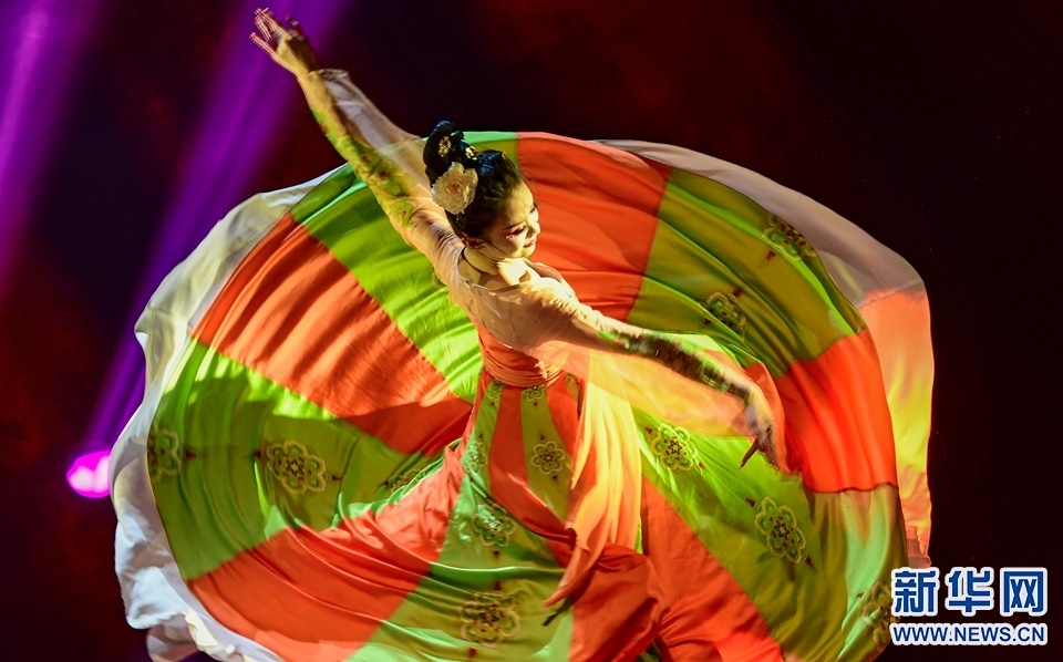 1月12日,演員在2022年內(nèi)蒙古新年舞蹈晚會(huì)中表演群舞《盅舞》。新華網(wǎng)發(fā)(王正攝)