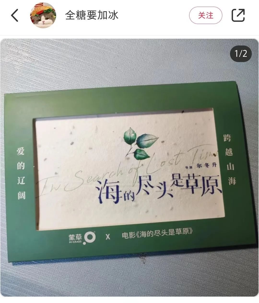大火的影片周邊文創(chuàng)還有種子紙,它像一個明信片一樣,打開它,仿佛打開了塵封的草原往事。