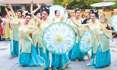 中國絲綢博物館舉辦“國絲漢服節(jié)”快閃活動。
