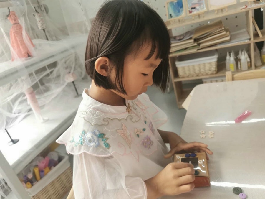 在布衣樣區(qū)域,小朋友親自制作艾草手工皂,通過(guò)繪畫艾草圖標(biāo)設(shè)計(jì)禮盒、制作艾草工皂,用做好的艾草洗手,感受成果的喜悅。(記者 楊凈毓)
