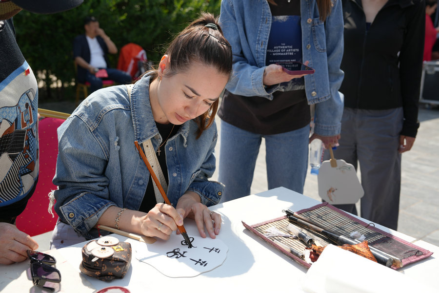 舞臺(tái)一側(cè),書(shū)畫(huà)家們揮毫潑墨,筆走龍蛇,引得圍觀觀眾連連稱(chēng)贊。非物質(zhì)文化遺產(chǎn)展區(qū)更是熱鬧非凡,琳瑯滿目的非遺展品令人目不暇接,剪紙、漆扇等傳統(tǒng)技藝展示,讓大家近距離領(lǐng)略到非物質(zhì)文化遺產(chǎn)的獨(dú)特魅力。