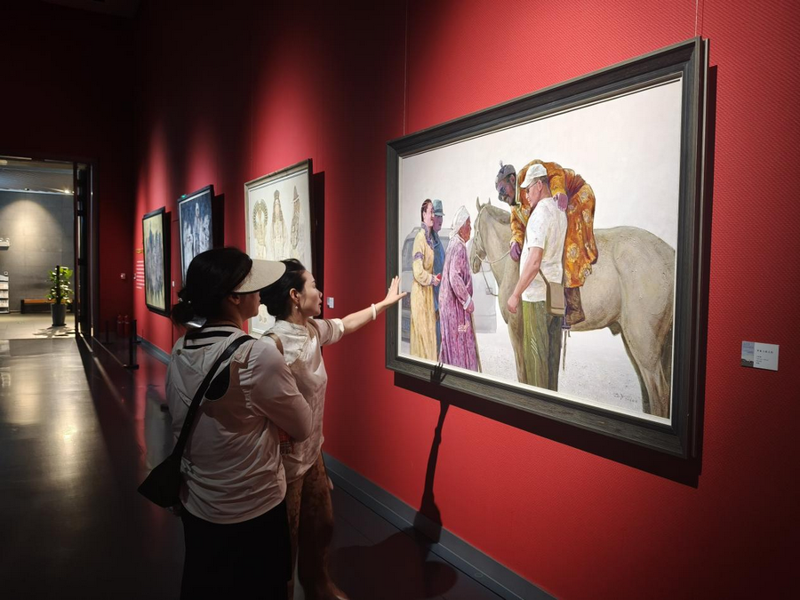 “吾心歸 ——內(nèi)蒙古美術館館藏妥木斯師生油畫作品展”(8.8-9.7,3/4號展廳):該展覽像一部立體的草原藝術編年史,妥木斯筆下的蒙古馬依然昂揚,而弟子們的作品早已玩出了新花樣:超現(xiàn)實手法讓羊群飄在星空下,極簡線條勾勒出蒙古包的幾何之美。在“當代回聲”篇章里,能清晰看見草原意象如何在畫布上完成從傳統(tǒng)到現(xiàn)代的蛻變,就像馬頭琴也能彈出電子旋律,根沒變,韻更活了。