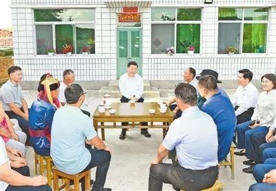 7月15日至16日,中共中央總書記、國家主席、中央軍委主席習(xí)近平在內(nèi)蒙古考察并指導(dǎo)開展“不忘初心、牢記使命”主題教育。這是15日下午,習(xí)近平在赤峰市喀喇沁旗河南街道馬鞍山村村民張國利家,同基層干部群眾代表座談交流?! ⌒氯A社記者 謝環(huán)馳攝