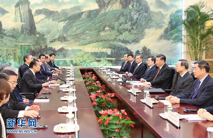 習(xí)近平指出,當(dāng)前,中日關(guān)系重回正常軌道,呈現(xiàn)積極發(fā)展勢頭。雙方要恪守中日四個政治文件確立的各項(xiàng)原則,堅持和平友好大方向,持續(xù)深化互利合作,推動兩國關(guān)系健康穩(wěn)定發(fā)展。要把中日“互不構(gòu)成威脅”、“互為合作伙伴,相互支持對方和平發(fā)展”的政治共識落到實(shí)處,把兩國各領(lǐng)域交流合作推向新水平。雙方要深挖合作潛力。中方歡迎日方繼續(xù)深入?yún)⑴c中國改革開放,希望日方更加積極參與共建“一帶一路”。雙方要加強(qiáng)溝通和協(xié)調(diào),共同維護(hù)多邊主義和自由貿(mào)易,共同推動建設(shè)開放型世界經(jīng)濟(jì)。中方支持日方辦好二十國集團(tuán)領(lǐng)導(dǎo)人大阪峰會。今年是中日青少年交流促進(jìn)年,雙方要在兩國民間特別是青少年當(dāng)中廣泛播撒友好種子,推進(jìn)民心相通。