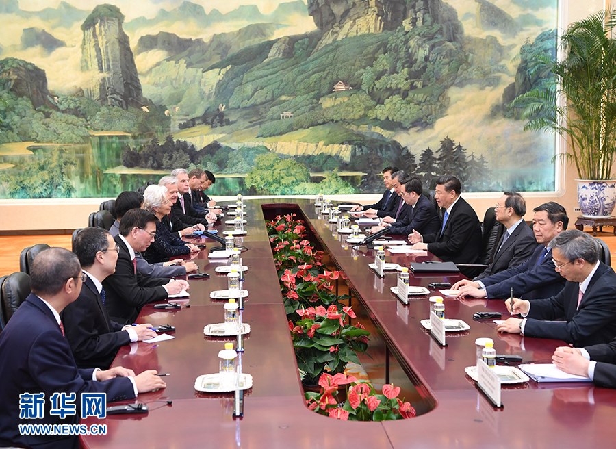 4月24日,國家主席習(xí)近平在北京人民大會堂會見國際貨幣基金組織總裁拉加德。 新華社記者 饒愛民 攝