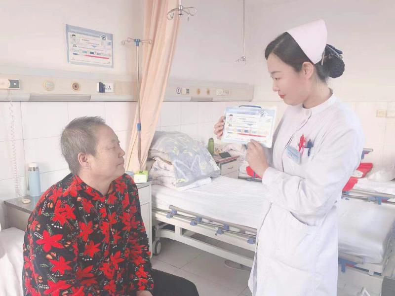 腫瘤放射治療科護(hù)士在護(hù)士長(zhǎng)的帶領(lǐng)下對(duì)腫瘤患者進(jìn)行健康宣教
