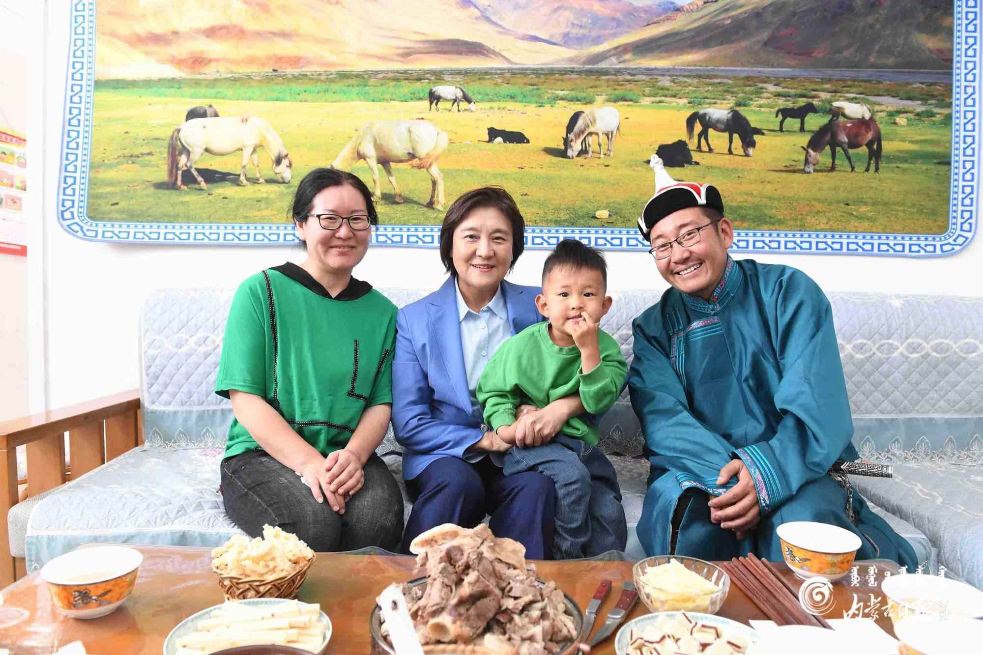 6月8日,自治區(qū)黨委副書記、自治區(qū)主席布小林在巴彥淖爾市烏拉特中旗調(diào)研,她來(lái)到希日朝魯嘎查牧戶呼斯勒家走訪,并與他們一家合影留念。內(nèi)蒙古日?qǐng)?bào)社融媒體記者 韓卿立攝