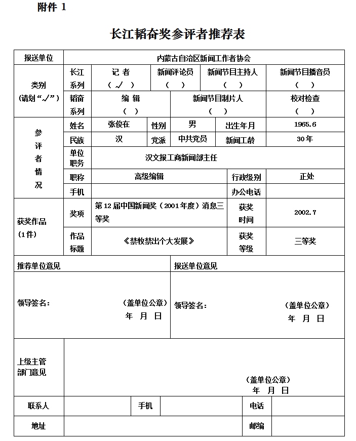 按照中國(guó)新聞獎(jiǎng)評(píng)獎(jiǎng)辦公室《長(zhǎng)江韜奮獎(jiǎng)評(píng)選辦法(預(yù)通知版)》要求,現(xiàn)就內(nèi)蒙古自治區(qū)第十六屆長(zhǎng)江韜奮獎(jiǎng)參評(píng)人員張俊在相關(guān)事項(xiàng)進(jìn)行補(bǔ)充公示。將報(bào)送的獲獎(jiǎng)作品由消息《玉米當(dāng)家奶牛唱紅涼城縣灘區(qū)結(jié)構(gòu)調(diào)整讓農(nóng)民鼓了腰包》替換為消息《禁牧禁出個(gè)大發(fā)展》。