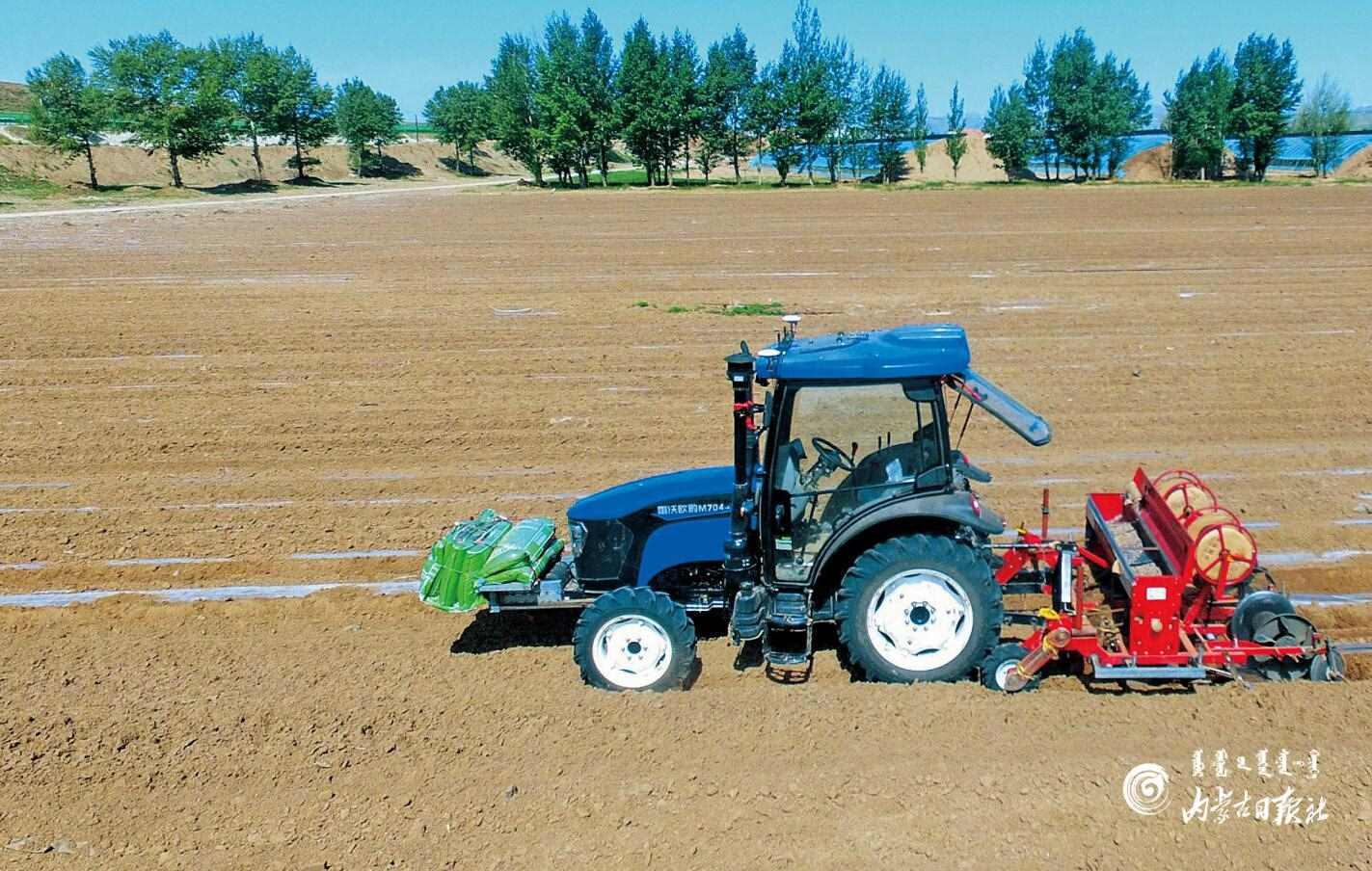 裝有北斗導(dǎo)航系統(tǒng)的拖拉機在起壟、覆膜。