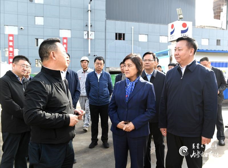 10月11日,自治區(qū)黨委副書記、自治區(qū)主席布小林來到烏海市烏達(dá)區(qū)內(nèi)蒙古興發(fā)科技有限公司有機(jī)硅新材料一體化循環(huán)項(xiàng)目現(xiàn)場,深入了解企業(yè)技術(shù)路線、環(huán)保裝置等方面情況。內(nèi)蒙古日?qǐng)?bào)記者 韓卿立 攝