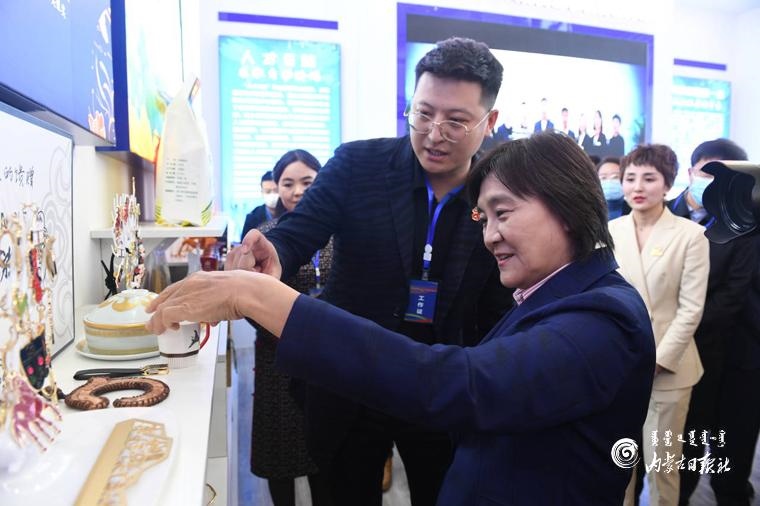 10月15日,自治區(qū)黨委副書記、自治區(qū)主席布小林參觀自治區(qū)“雙創(chuàng)”成果展。內(nèi)蒙古日報記者 韓卿立攝