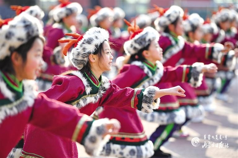 11月26日,呼和浩特市玉泉區(qū)南茶坊小學(xué)的學(xué)生在大課間跳起具有濃郁民族特色的課間操。據(jù)了解,為了讓孩子們更加了解民族傳統(tǒng)文化,熱愛自己的家鄉(xiāng),同時豐富學(xué)生的大課間生活,今年以來,南茶坊小學(xué)編排了一套具有濃郁民族特色的課間操,將民族舞蹈與課間操相結(jié)合,讓學(xué)生既能鍛煉身體,又能感受到家鄉(xiāng)民族文化的魅力。內(nèi)蒙古日報社融媒體記者 王磊 攝