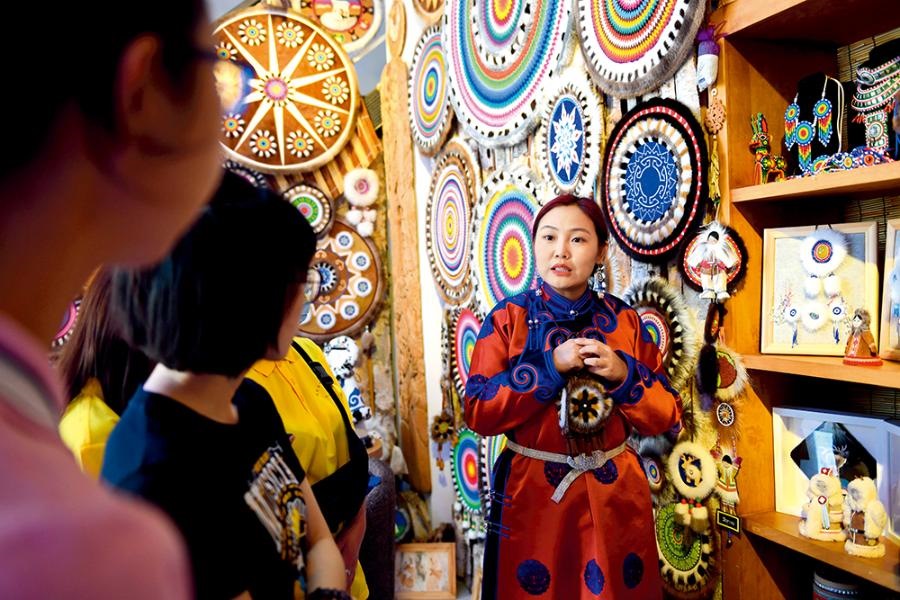 借助自己的鄂倫春族身份,白鵬英成立手工藝坊,組織婦女制作鄂倫春族手工藝品,然后利用網(wǎng)上平臺(tái)銷售到全國各地,每個(gè)婦女每年平均可增收1000元。