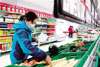 居民在便民超市選購新鮮蔬菜。