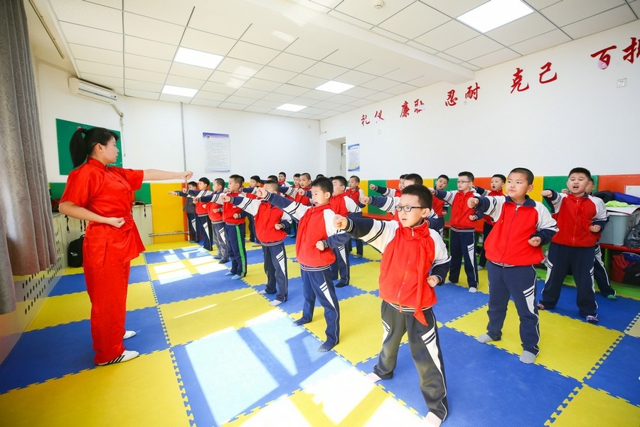 夏艷老師正在教同學(xué)們練習(xí)武術(shù)基本功 彭瑞誠 攝影