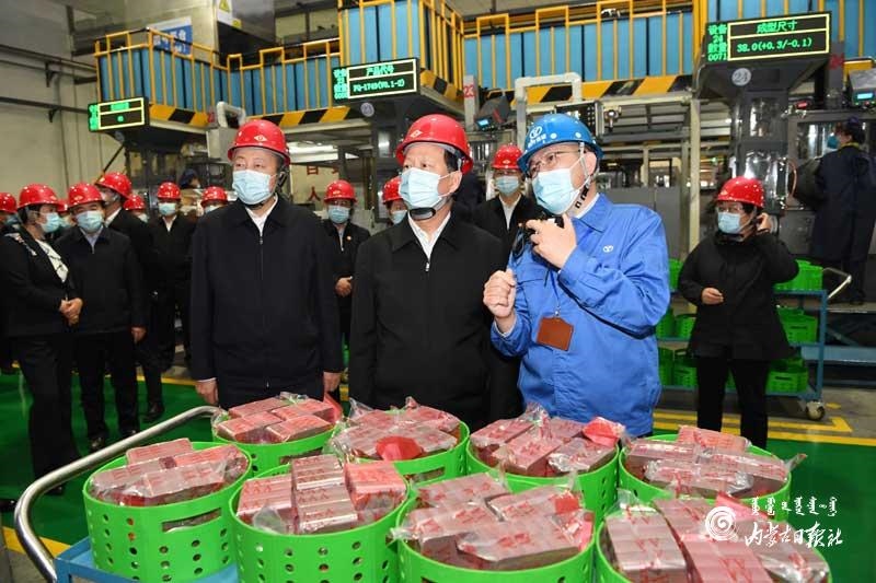 4月22日,自治區(qū)黨委書記、人大常委會(huì)主任石泰峰,與參加自治區(qū)推動(dòng)高質(zhì)量發(fā)展重大項(xiàng)目建設(shè)動(dòng)員大會(huì)的代表一起觀摩包頭韻升強(qiáng)磁材料有限公司二期擴(kuò)建項(xiàng)目。內(nèi)蒙古日?qǐng)?bào)社融媒體記者袁永紅攝
