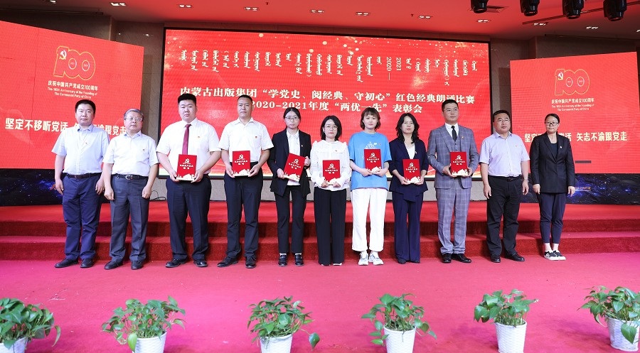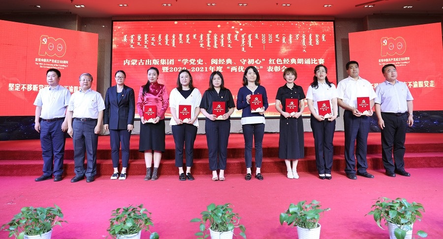 6月26日,內(nèi)蒙古出版集團(tuán)在維力斯大酒店舉辦“學(xué)黨史、閱經(jīng)典、守初心”紅色經(jīng)典朗誦比賽暨2020—2021年度“兩優(yōu)一先”表彰大會(huì)。內(nèi)蒙古出版集團(tuán)黨委書記、董事長(zhǎng)雙龍,黨委副書記王富,黨委委員、副總經(jīng)理扎拉根,副總經(jīng)理王曉玲,總編輯助理黃滔,總經(jīng)理助理白玉峰等領(lǐng)導(dǎo)出席會(huì)議。