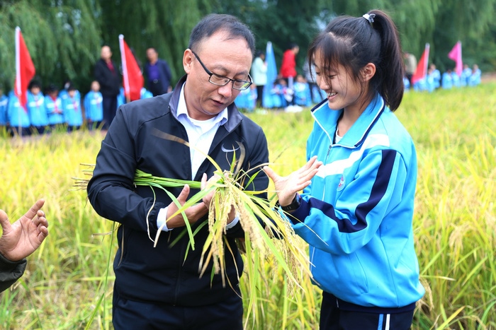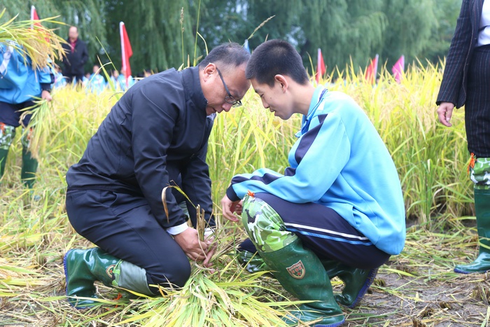 在科右前旗大壩溝中學水稻“收割節(jié)”的活動現(xiàn)場,調(diào)研組一行拿起鐮刀,穿起水鞋,來到水稻田里,與學生們一起體驗收割水稻帶來的成就感和幸福感。調(diào)研人員表示:對于不愁吃、不愁穿的年輕一代而言,僅僅從勞動謀生功能的角度去思考勞動教育是遠遠不夠的,他們最匱乏的是精神層面自我實現(xiàn)的意義感和價值感。通過深入實際,參與勞動,創(chuàng)造價值,這樣全流程的勞動實踐,才能深切領(lǐng)會“幸福是奮斗出來的”內(nèi)涵與意義,才能養(yǎng)成正確的勞動價值觀和良好勞動品質(zhì)。