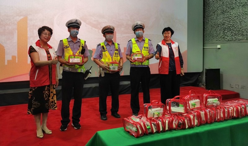 無限極志愿者為交管大隊代表贈送清涼包