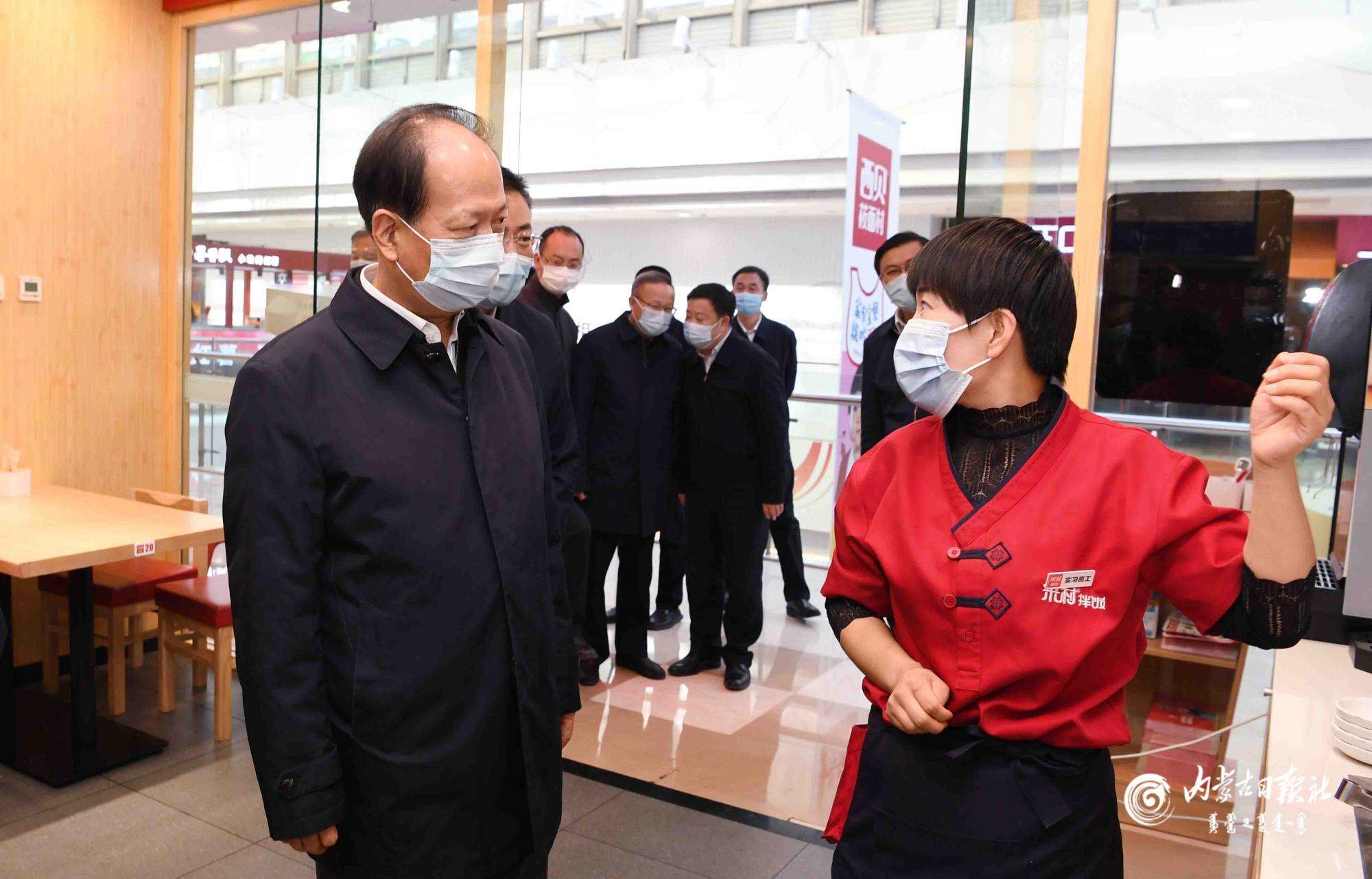 10月26日,自治區(qū)黨委書記、人大常委會主任石泰峰來到新華大街萬達(dá)廣場,檢查防控措施落實(shí)情況。內(nèi)蒙古日報社融媒體記者 袁永紅 攝