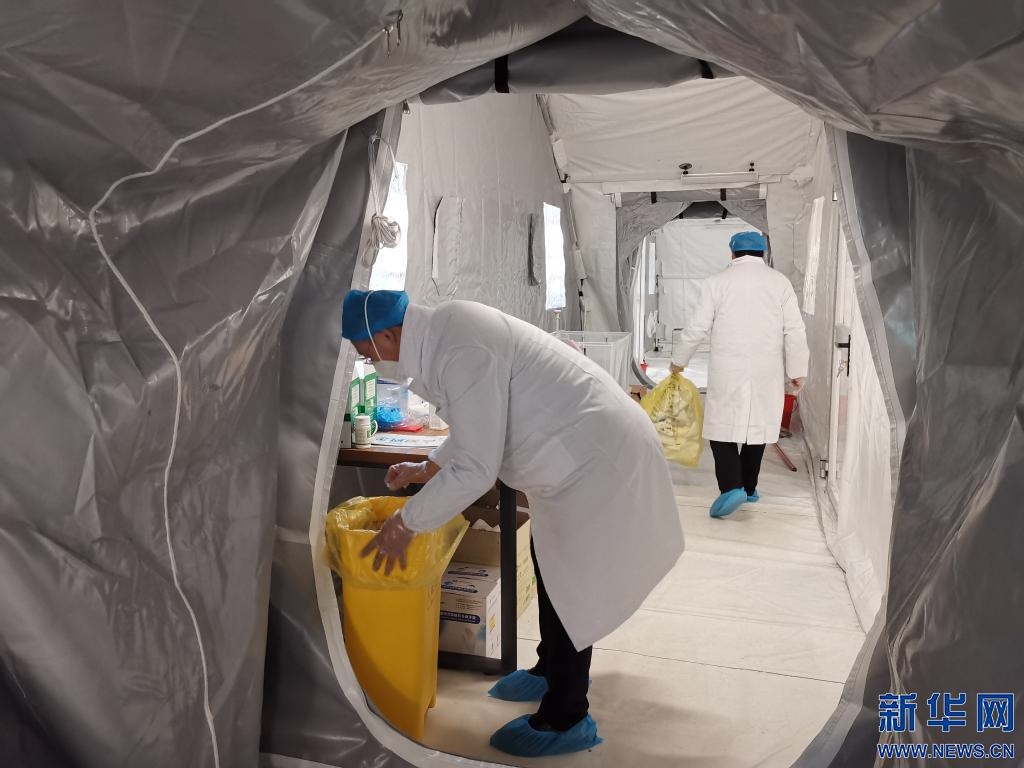 12月3日,志愿者在“獵鷹號”硬氣膜實驗室內(nèi)清理垃圾。新華社記者 魏婧宇 攝