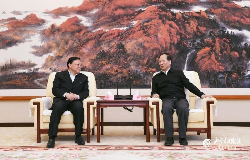 1月17日,自治區(qū)黨委書記、人大常委會主任石泰峰在呼和浩特會見中國交通建設(shè)集團黨委書記、董事長王彤宙。內(nèi)蒙古日報社融媒體記者袁永紅攝