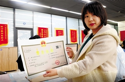 包頭市昆都侖區(qū)實(shí)現(xiàn)“一枚印章管審批”。商戶在展示剛更換的營業(yè)執(zhí)照。本報(bào)記者孟和朝魯攝