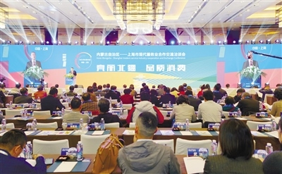 自治區(qū)商務(wù)廳在上海舉辦“內(nèi)蒙古自治區(qū)—上海市現(xiàn)代服務(wù)業(yè)合作交流洽談會”。內(nèi)蒙古日報(bào)社融媒體記者高慧攝