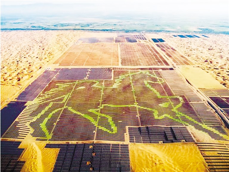 駿馬奔騰似潮涌,一日千里獨行空。庫布其沙漠腹地,由196320塊藍色光伏板組成的駿馬圖栩栩如生,格外吸睛。內(nèi)蒙古現(xiàn)代能源經(jīng)濟,一如這昂首奔騰的駿馬,向著“雙碳”目標(biāo)奮蹄疾馳。(記者 許曉嵐 康麗娜)