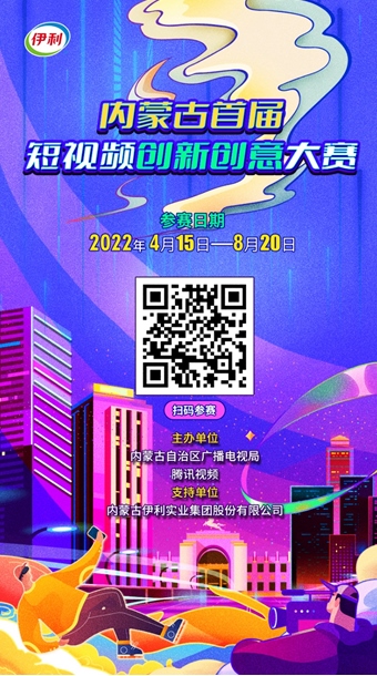 為進一步推動網絡視聽行業(yè)高質量發(fā)展,充分發(fā)揮優(yōu)秀網絡視聽作品示范引領作用,激發(fā)網絡視聽創(chuàng)作創(chuàng)新活力,唱響新時代主旋律,壯大主流輿論,傳播正能量,內蒙古自治區(qū)廣播電視局特舉辦“內蒙古首屆短視頻創(chuàng)新創(chuàng)意大賽”。本次大賽以“奮進新征程建功新時代亮麗內蒙古”為主題,聯(lián)合騰訊視頻、內蒙古伊利實業(yè)集團股份有限公司共同舉辦。