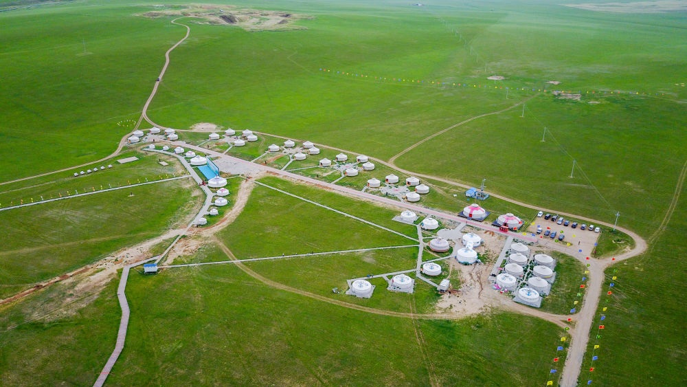 這是內(nèi)蒙古錫林郭勒盟寶力根蘇木的一處那達(dá)慕會場(2017年7月21日攝,無人機(jī)照片)。新華社記者連振攝