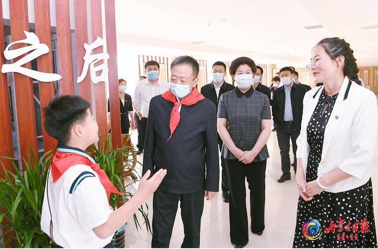 6月1日,自治區(qū)黨委書記孫紹騁來到鄂爾多斯市康巴什區(qū)第五小學,觀看了學校組織的書法、美術和才藝展示等文體活動,并與小學生共同慶?!傲弧眹H兒童節(jié)。記者袁永紅攝