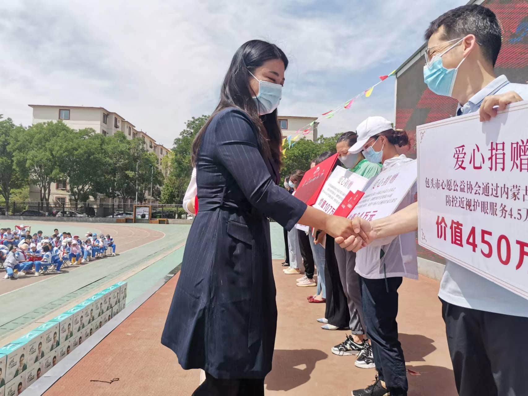 同時,自治區(qū)團委、內蒙古青基會以及愛心單位為內蒙古農業(yè)大學附屬中學捐贈建設愛眼小屋和愛眼包以及后期視力防控訓練、弱視訓練、單光眼鏡和近視防控家長課堂等項目。