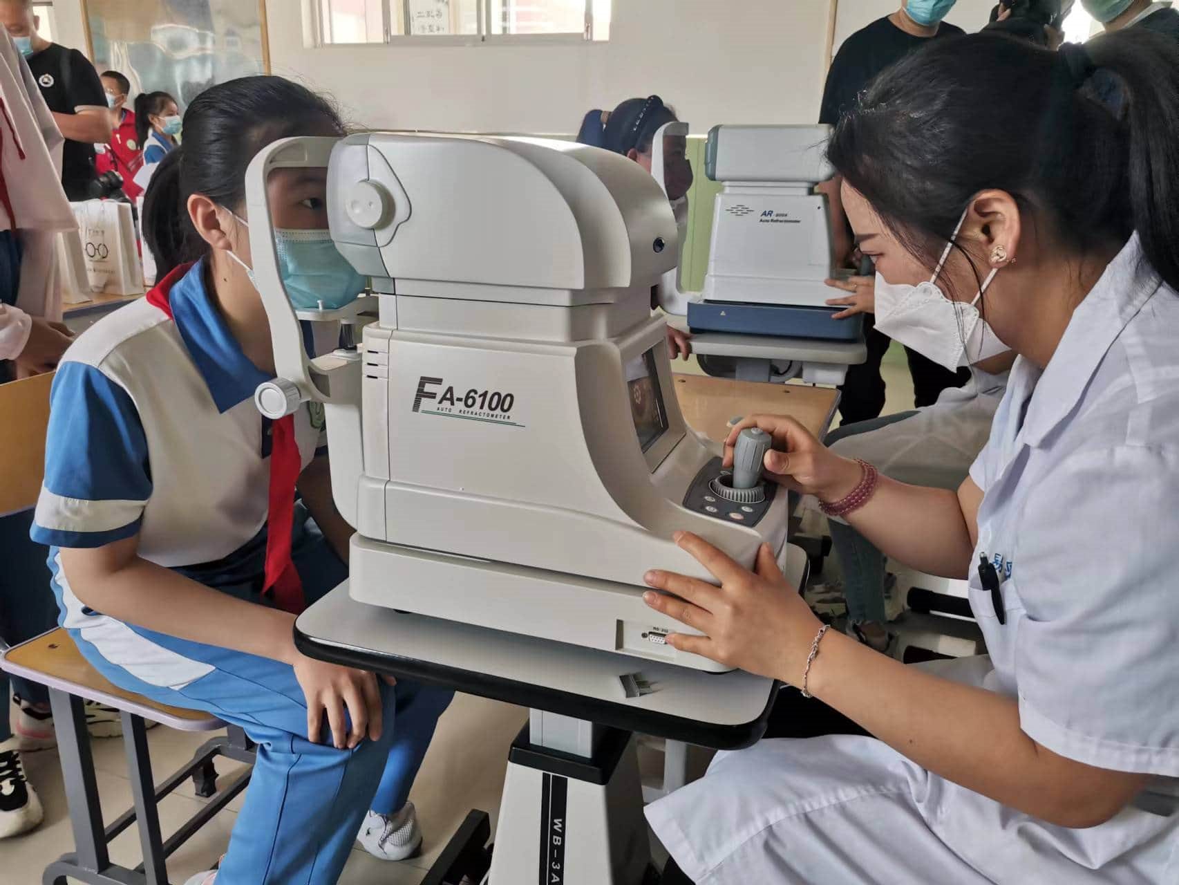 活動現(xiàn)場,眼科專家和眼鏡驗光師為孩子免費檢查眼睛,包括視力檢測、屈光度等內容。同時,針對青少年的近視問題,還教授孩子們如何預防近視,讓孩子們了解如何愛眼、護眼和養(yǎng)成健康用眼的好習慣。