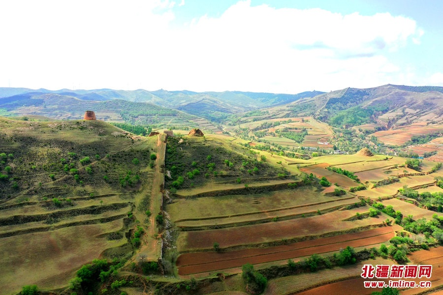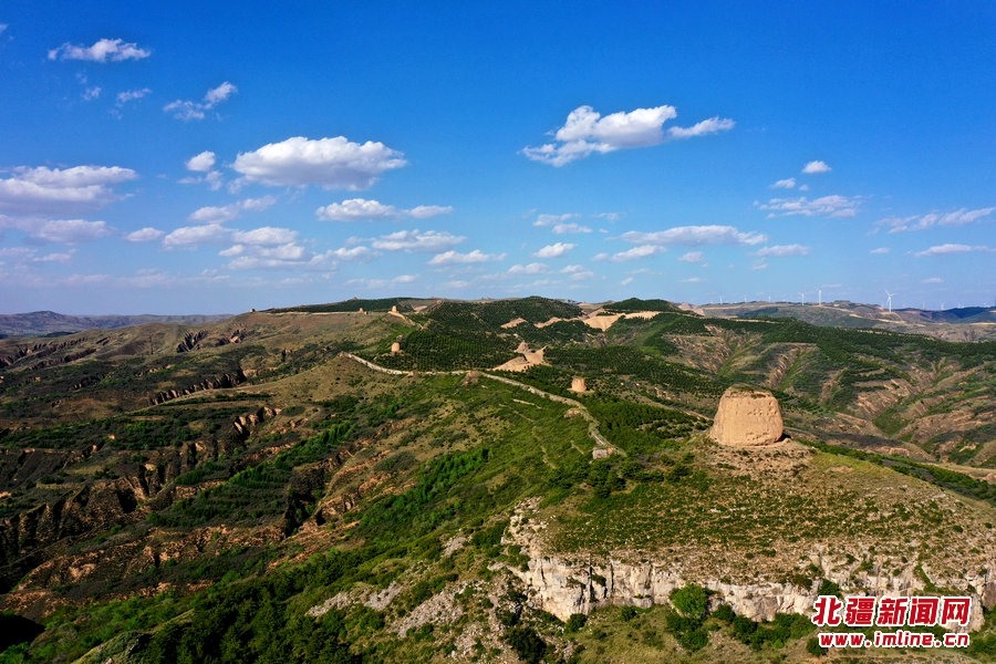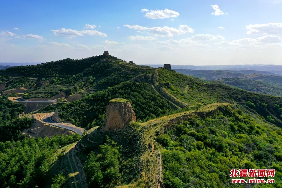 端午時(shí)節(jié),由G209國(guó)道岔口至老牛坡的公路正在緊張建設(shè)中。汽車(chē)沿著剛剛鋪好軟基的砂石路面行進(jìn),車(chē)窗外,高高低低的烽火墩臺(tái)聳立在山巒之上,巍峨雄偉,座座墩臺(tái)直沖云霄,蔚為壯觀。清水河縣明長(zhǎng)城國(guó)家文化公園的核心區(qū)小元峁段長(zhǎng)城(栜木塔長(zhǎng)城)即位于此。