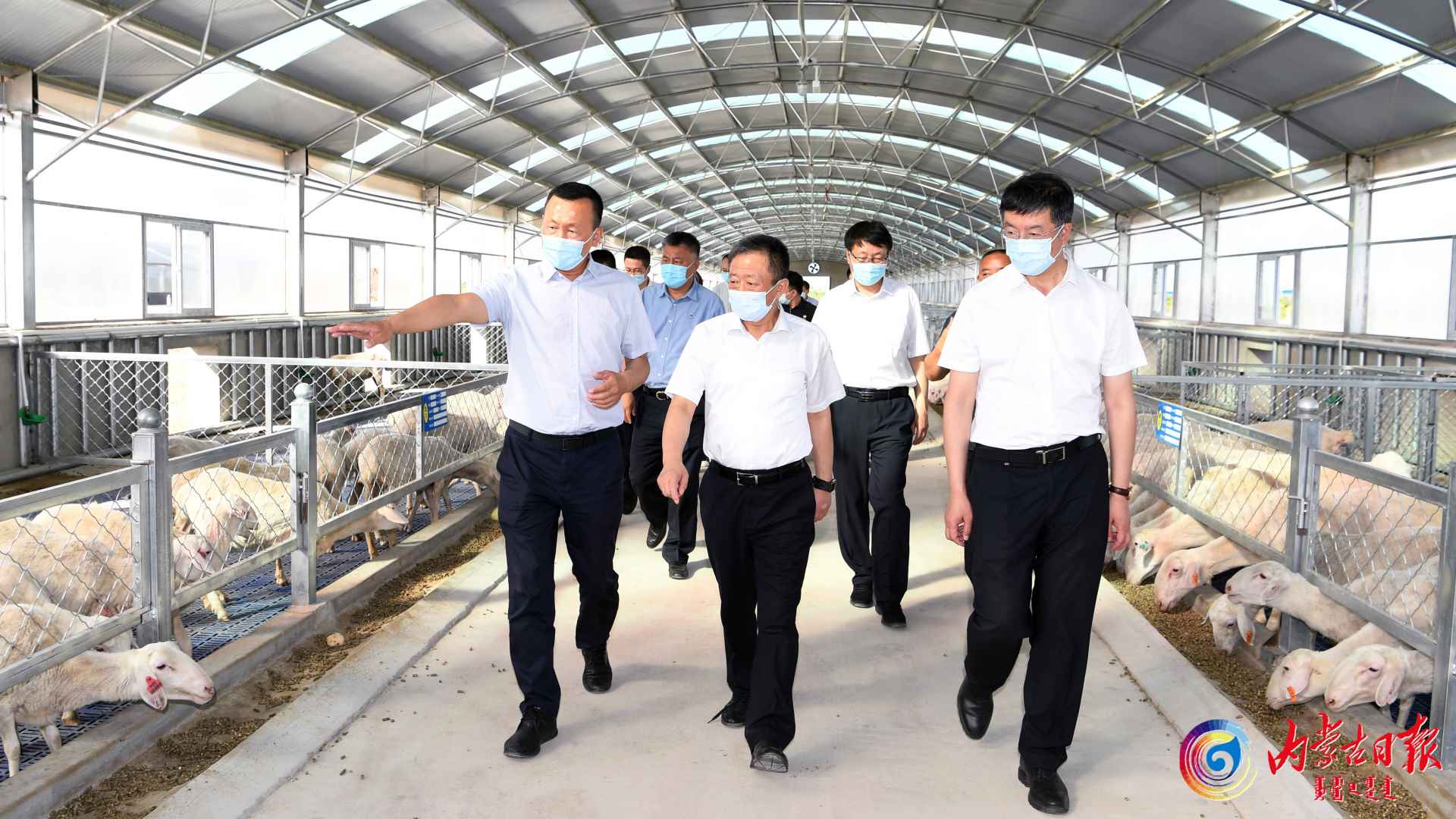 7月4日,自治區(qū)黨委書記孫紹騁來到錫林郭勒盟錫林浩特市毛登牧場現(xiàn)代肉羊產(chǎn)業(yè)園核心區(qū),了解肉羊產(chǎn)業(yè)發(fā)展情況。記者袁永紅攝