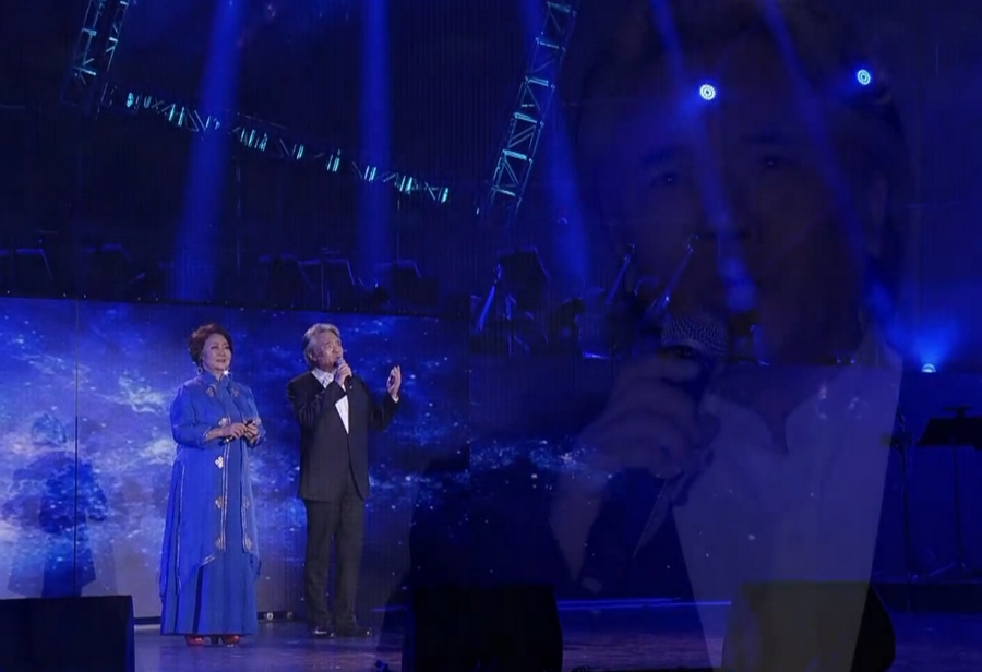夜幕下的內(nèi)蒙古體育館華燈璀璨,賓客云集。隨著《草原上升起不落的太陽(yáng)》響起,舞蹈演員翩翩起舞。著名演員張秋歌和薩日娜兩位講述人講述與草原的約定,用詩(shī)一般的語(yǔ)言串聯(lián)起整場(chǎng)演出。